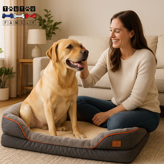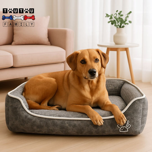 Le Grand panier pour chien - OrthopédiqueToutou™ offre également un soutien exceptionnel pour les chiens de grande taille, avec un design soigné qui s'intègre parfaitement dans votre intérieur.