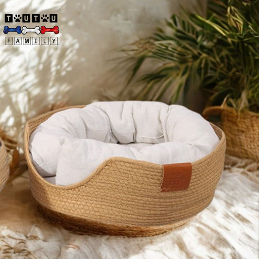 Le Panier petit chien - OsierToutou™ allie style et tradition avec sa structure en osier. Son coussin moelleux assure le confort de votre petit compagnon tout en apportant une touche décorative à votre intérieur.