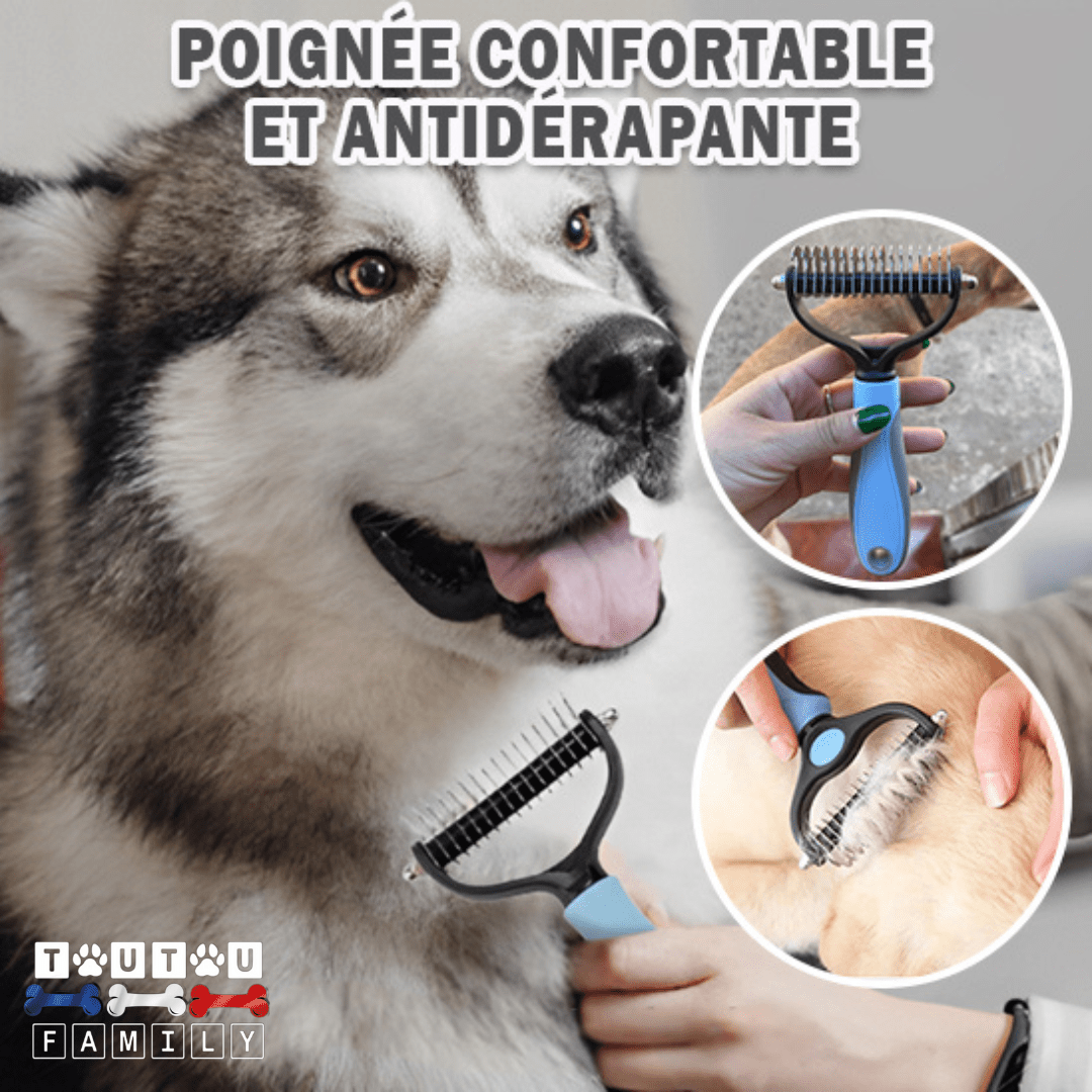 Les têtes arrondies de la brosse sont spécialement conçues pour prendre soin des poils noués sans douleur pour Toutou ! Notre brosse pour chien comporte des dents de sécurité des deux cotés pour protéger la peau de votre chien, assurant une expérience de toilette sûre et sans stress. Ainsi, elle dénoue sans effort les poils les plus rebelles, et retire le sous-poil mort sans irriter la peau de votre animal !