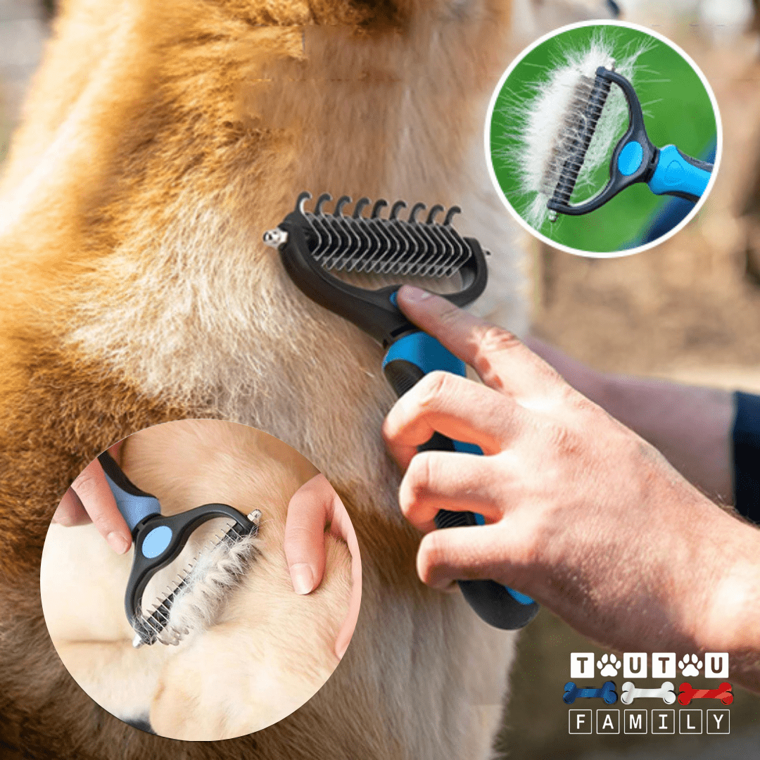 La brosse pour chien à poils longs est 3 en 1 : elle démêle, élimine les sous-poils morts et masse en un seul geste ! Grâce à ses 17 dents et 9 dents des deux cotés et ses engrenages à double sens, notre brosse pour chien ouvre et coupe les nœuds facilement et facilite le brossage sans entrave !