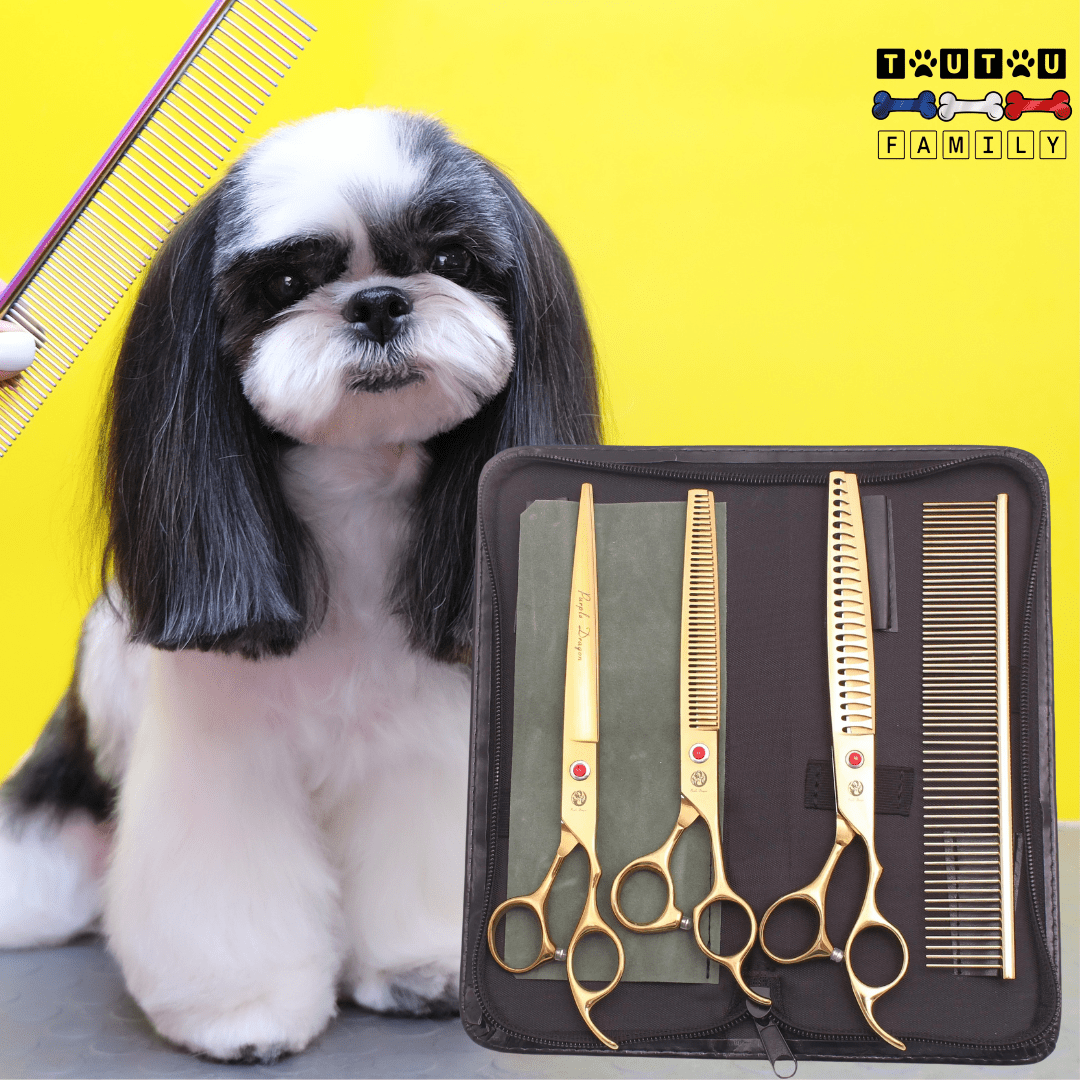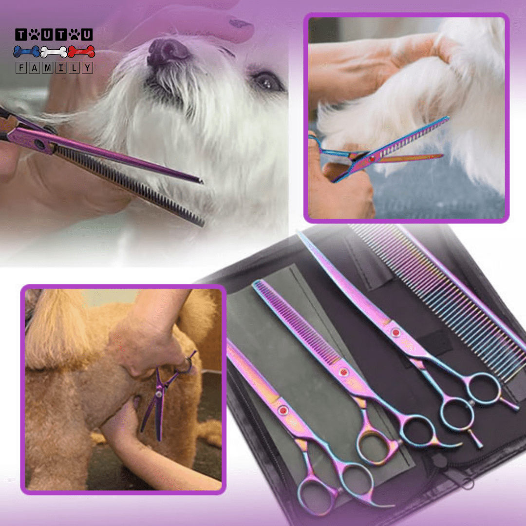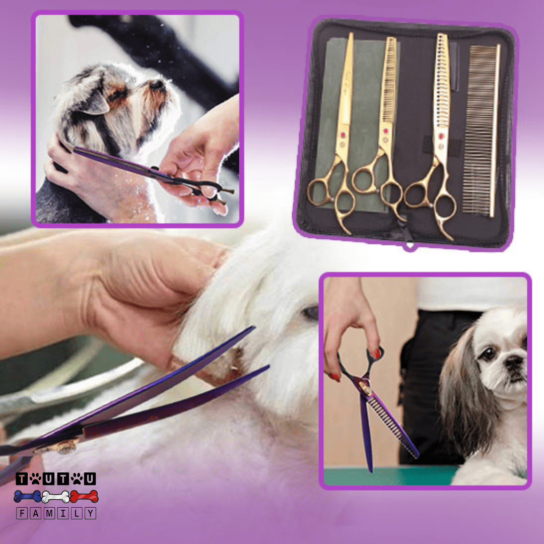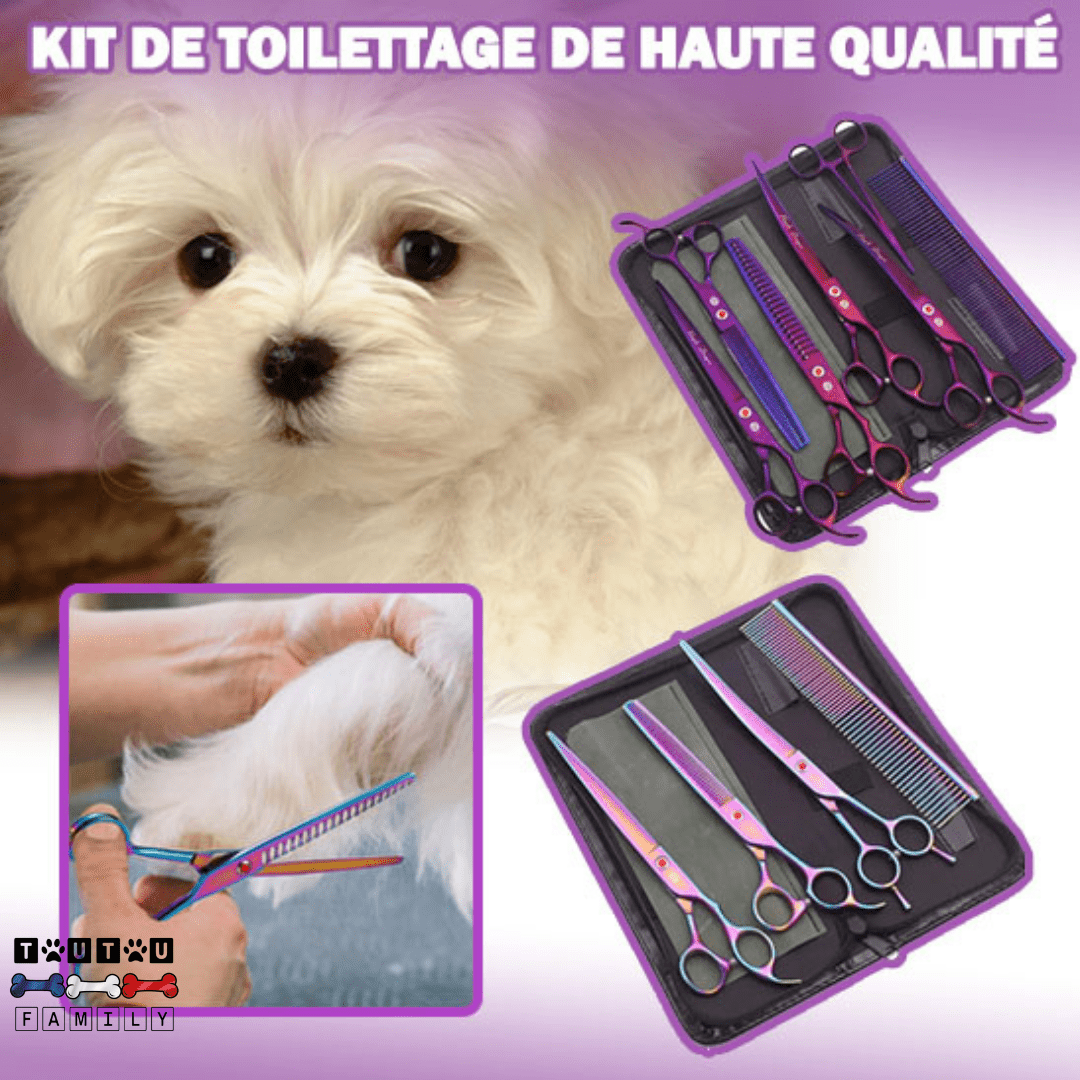 Fini les dépenses excessives de toilettage, et le stress du rendez-vous pour vous deux.  Obtenez des résultats professionnels en seulement 5 minutes avec notre kit de ciseaux de toilettage pour chien !