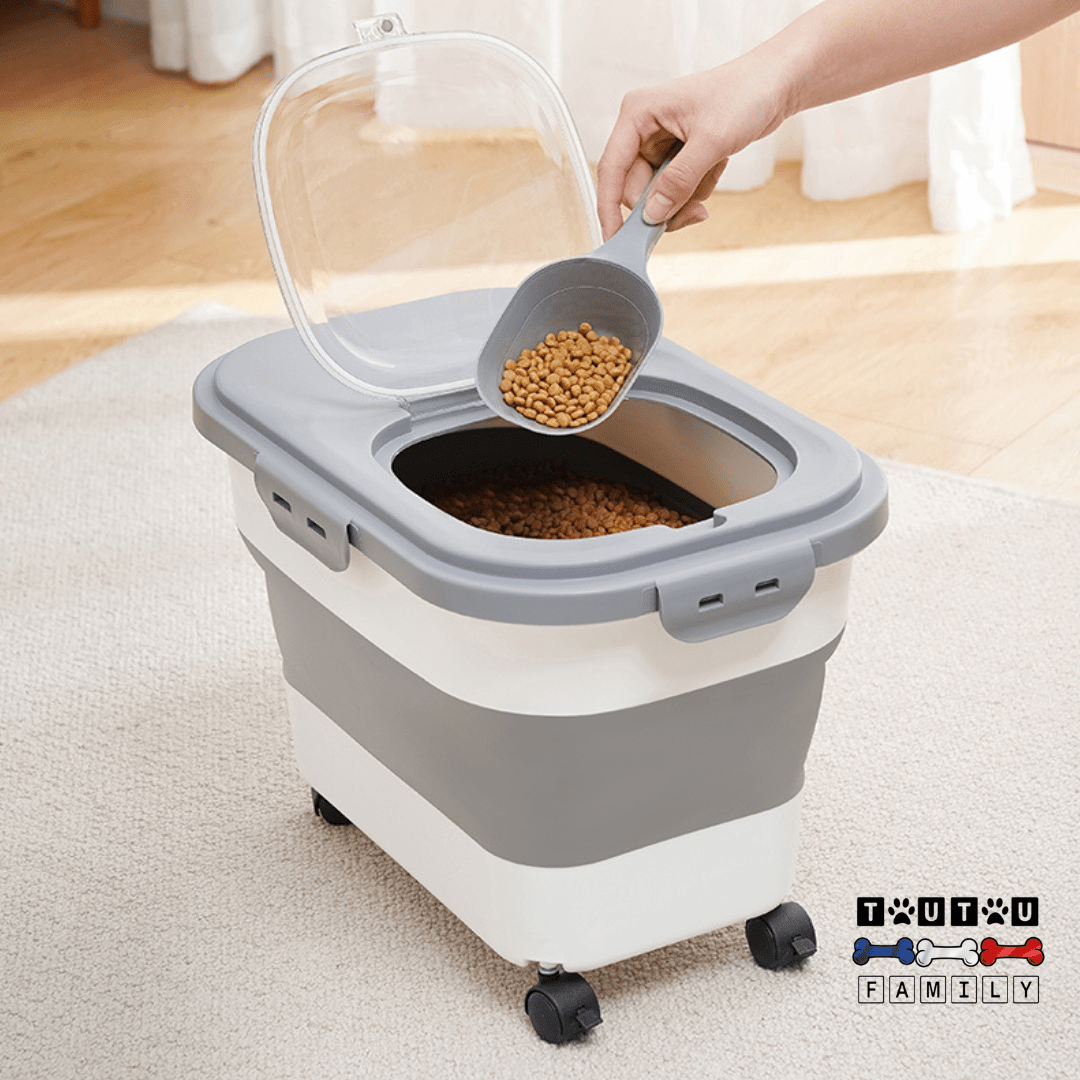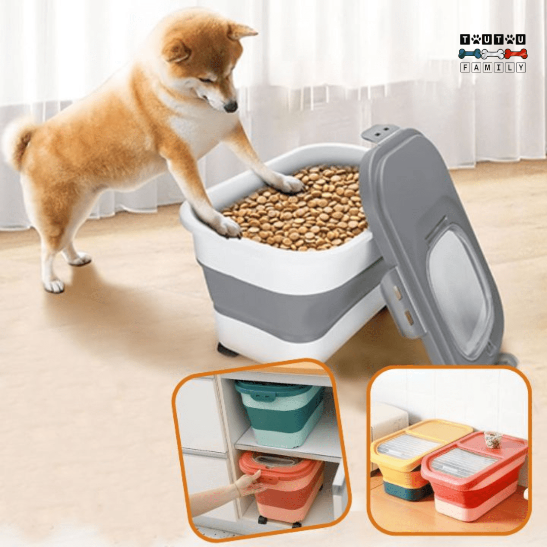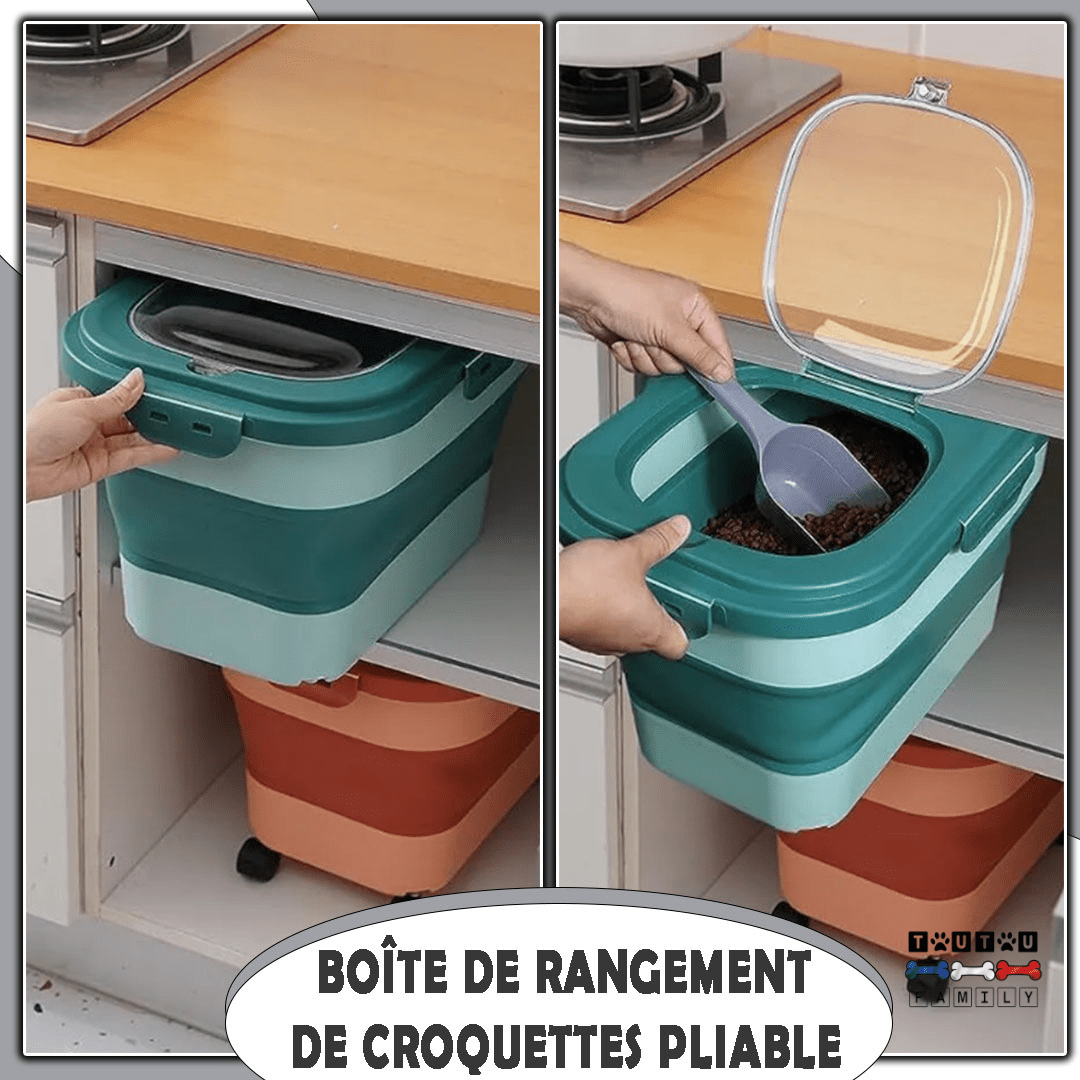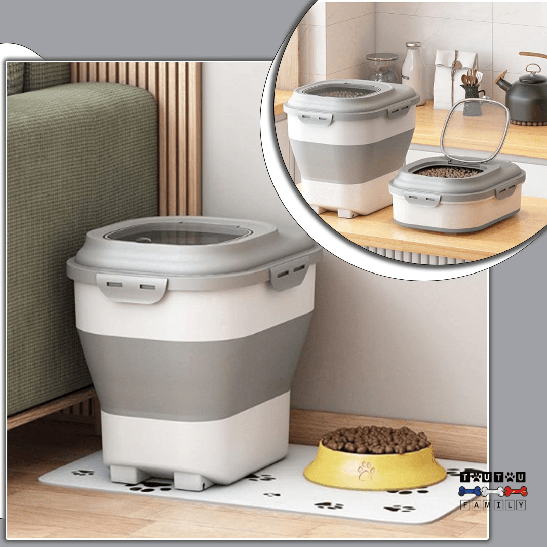 Louez la simplicité et la commodité de notre conteneur à croquettes pour chien ! Grâce à sa conception pliable, vous économisez de l'espace dans la maison en un seul geste !