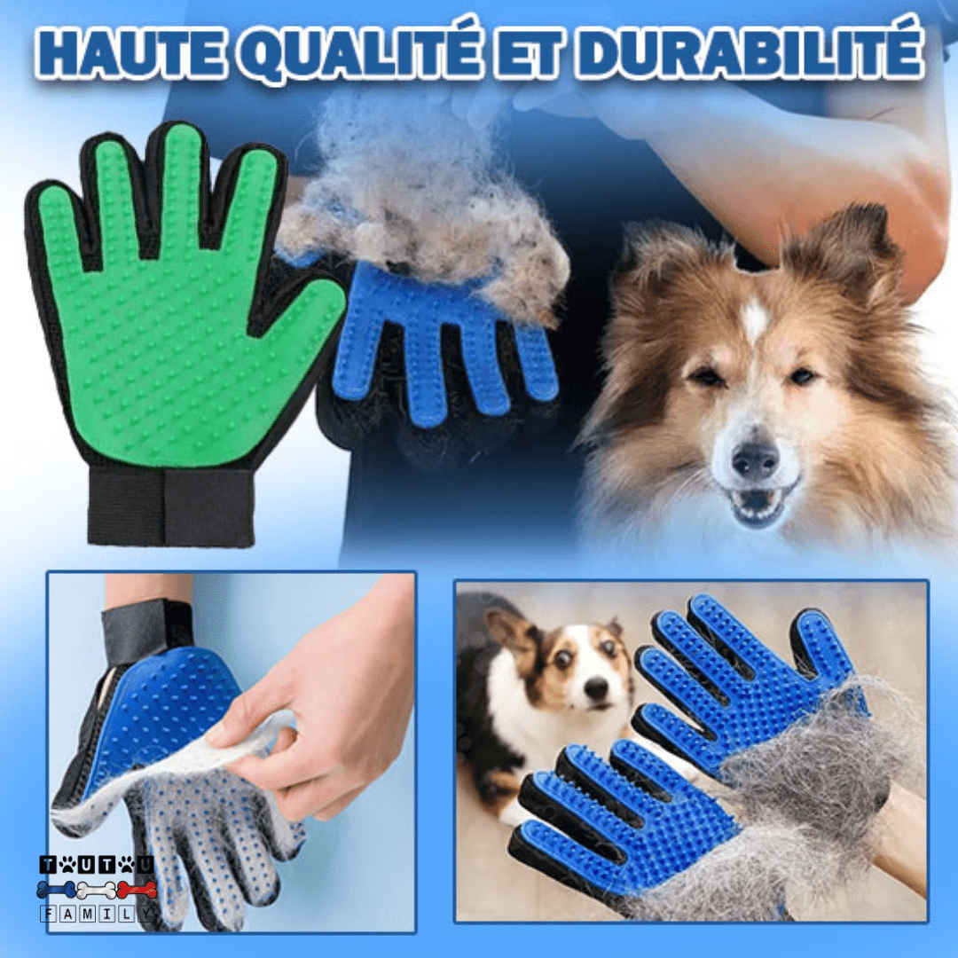 Enfilez les gants, caressez votre chien : et le voici en pleine séance de massage, grâce à l'ergonomie du gant, qui favorise la circulation sanguine et aide votre chien à conserver son beau pelage.