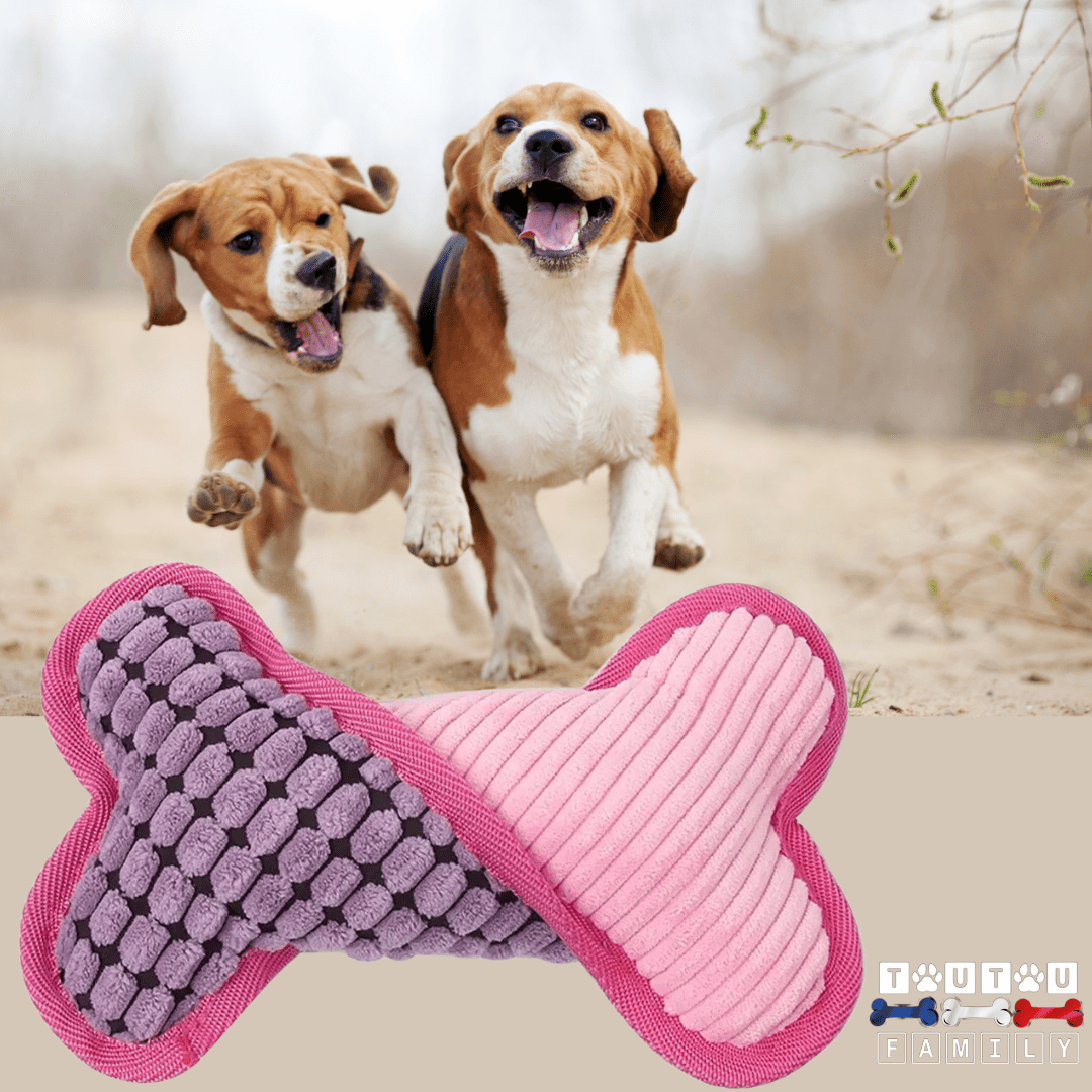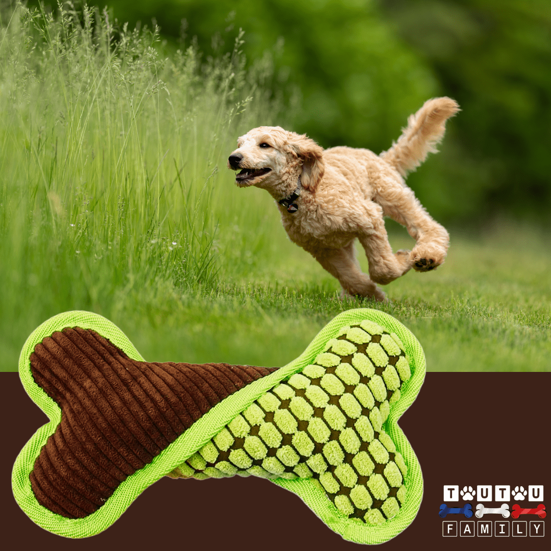 Notre peluche pour chien en forme d'os est conçue pour répondre au besoin de dépense mentale de votre chien hyperactif.